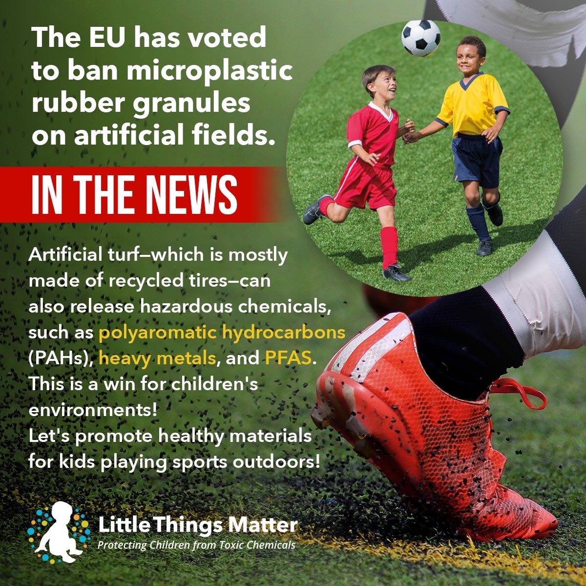 The EU Commission has voted to ban microplastic rubber granules on artificial turf fields. This is a win for children`s environments! ⠀